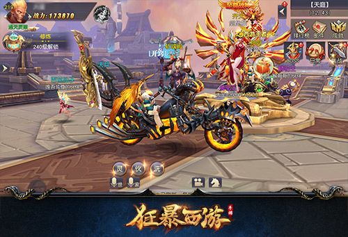 《狂暴西游》拥有包罗万象的魔幻坐骑,从异类坐骑到庞大的兽类再到飞禽,如九灵元圣、暗夜魔豹、黑风虎妖、雪域冰鹫、浴火凤凰等可谓千变万化。在坐骑系统中,除了升星解锁坐骑外,玩家还可以幻化更加霸气的坐骑,如:地狱摩托、机关神鸟、幻世魔王等坐骑。