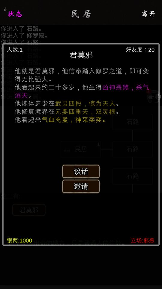 把的立场邪恶刷到25邀请君莫邪(九洲城买决斗许可,第一次购买需要两灵石,继续购买灵石会翻倍,等到次日即可刷新(注意:单独决斗一个人只能得到一点邪恶值,来回决斗才会刷新邪恶值点数。建议刷卖丹方的两个老头👍))