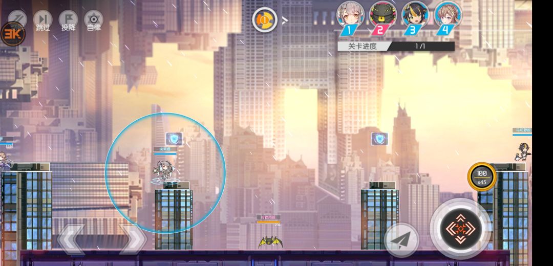 1.开局把埃莱娜飞到中间台子上,两队友左右台子各飞一个。利用下面的回合调整站位,两队友尽量靠近左右边缘(小心别自己掉下去)。