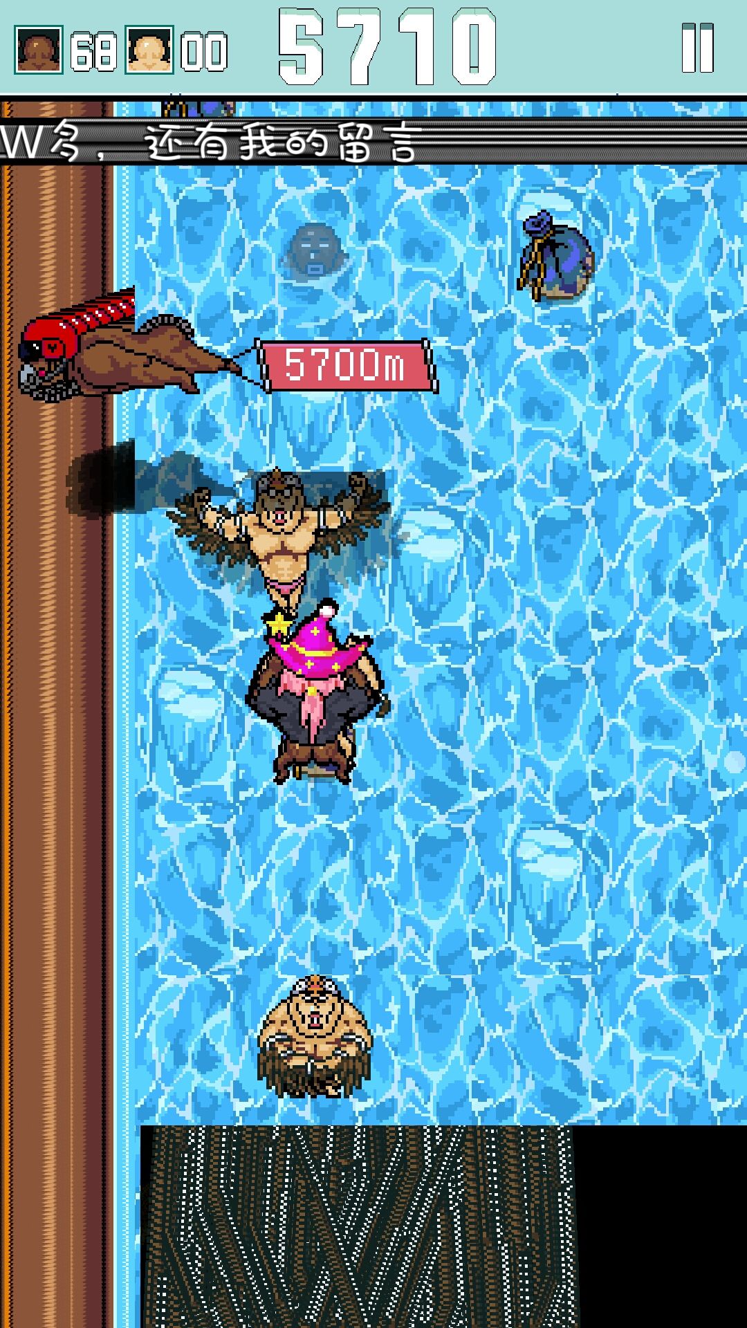 游戏到这个地方已经花屏了 死亡之后并没有出现留言板块儿 还有我死的时候有一条弹幕 说游戏进行到1万 会有一条留言 你们加油 我已经尽力了