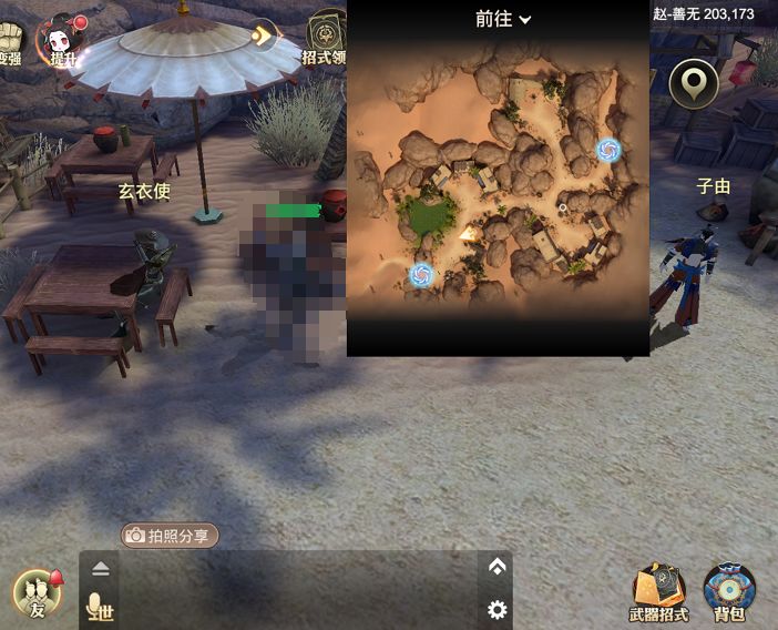 因为很多人在主线的时候都会选择吕不韦,我们就先来介绍一下玄衣使的隐藏任务。玄衣使的隐藏任务在赵国地图(沙漠地图)最左边的善无城市内,进入善无后只要在里面逛逛就会发现玄衣使正坐在桌边,坐标(203,173)附近,与玄衣使对话,他会他邀请你喝酒,你需要完成一段与玄衣使身世有关的任务后,就可以和心情变好的玄衣使结为同伴啦。