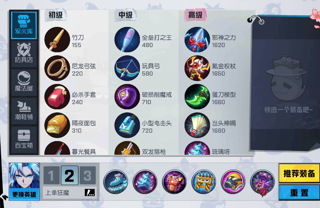 这套装备完全适合银角,后期将帽子卖掉换成金箍棒输出绝对爆炸!推荐单挑,阴人,打团战时记得绕后,毕竟这套装备皮脆,万一遇到一肉一射,你不锁定射手打,那你就准备会泉水吧!