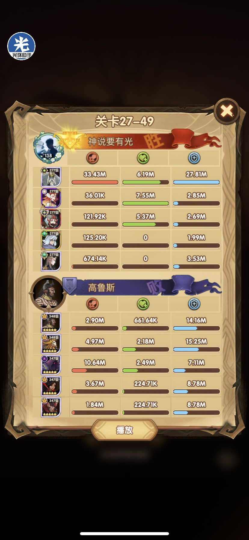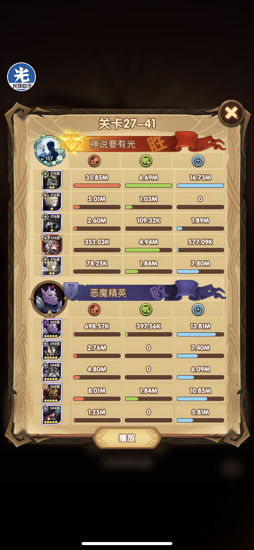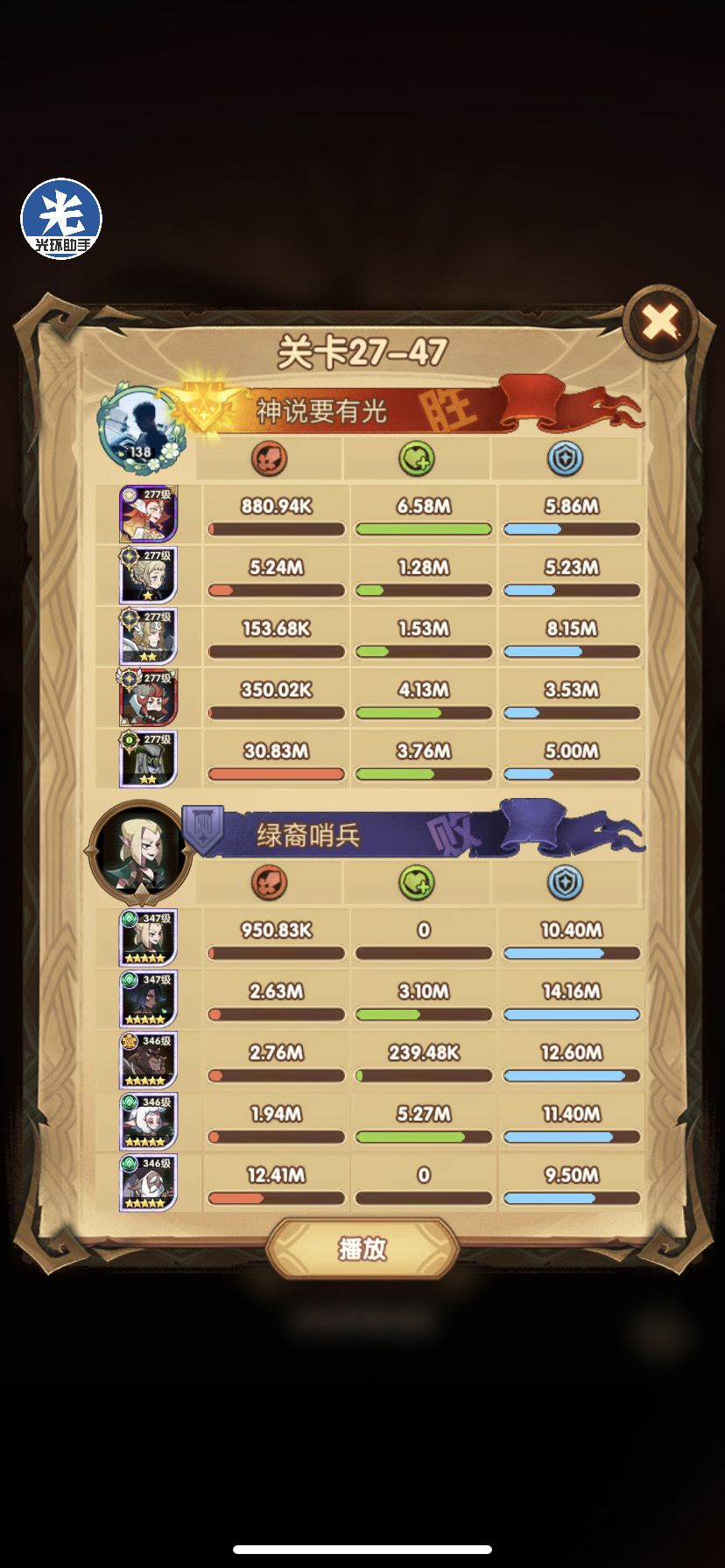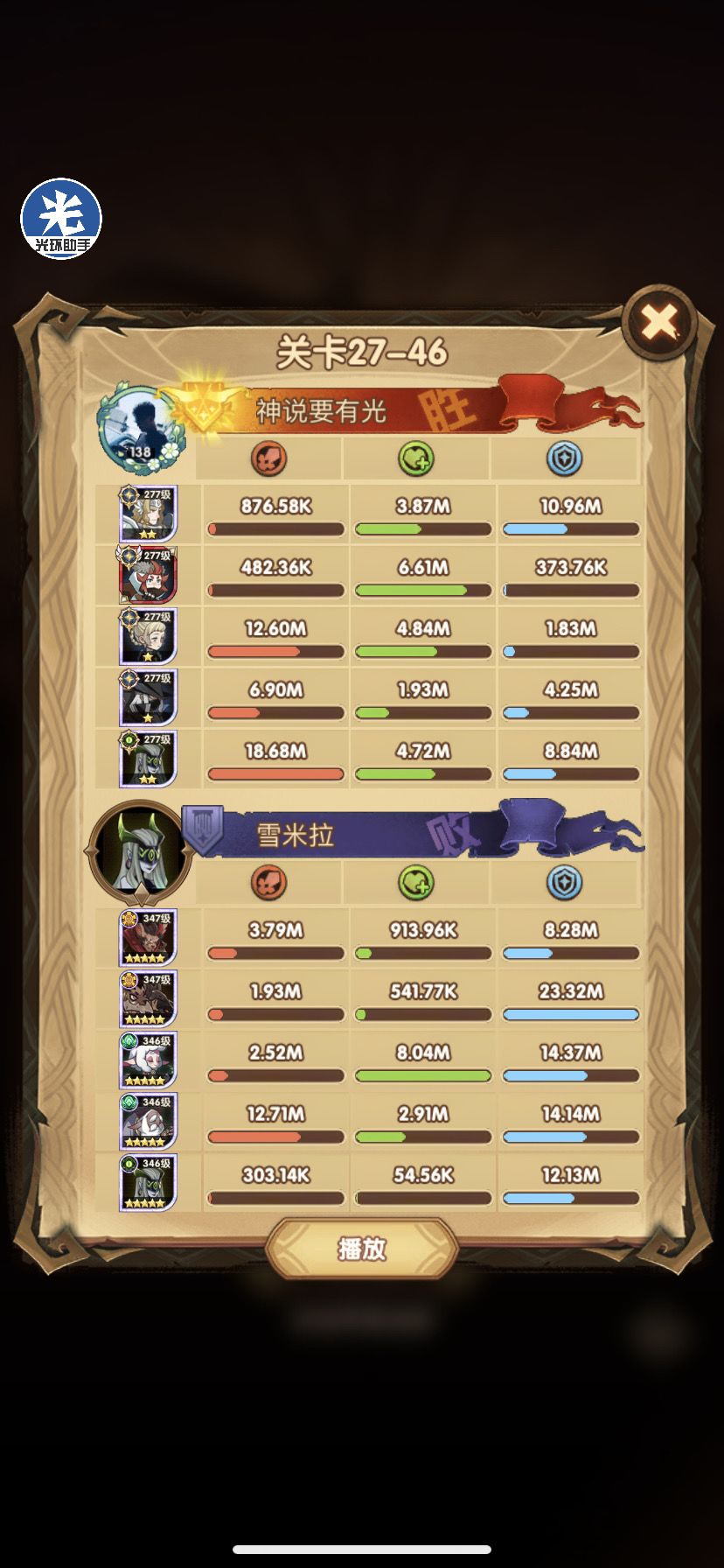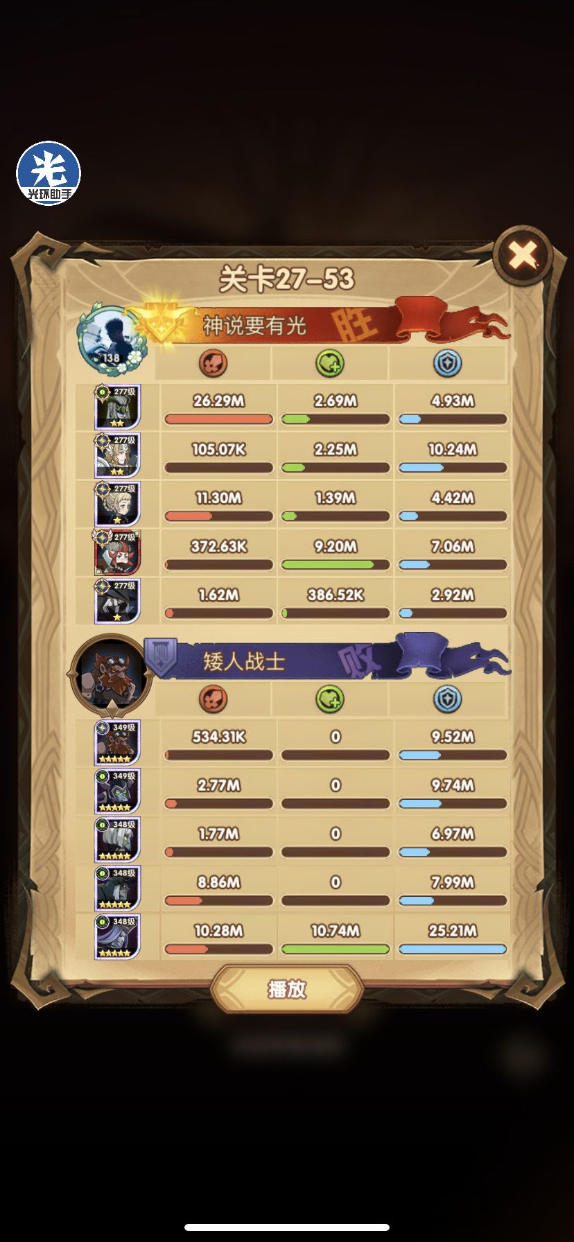 光盾战力太高,这关跟了光盾。