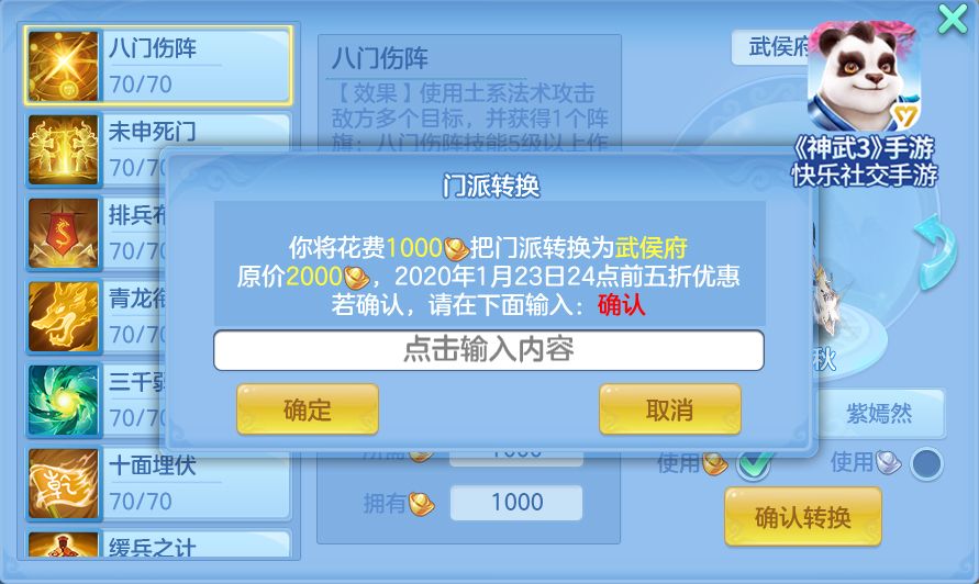 为了让诸位少侠可结合本次调整及自身需要选择想要转投的门派,开启新的冒险之旅!《神武3》手游特别推出了半价转门派限时福利,2019年11月22日至2020年1月23日活动期间,人物和子女在任意门派之间使用金币或银币转职均为半价,想要抢先体验武侯府的少侠们千万不要错过好机会哦。