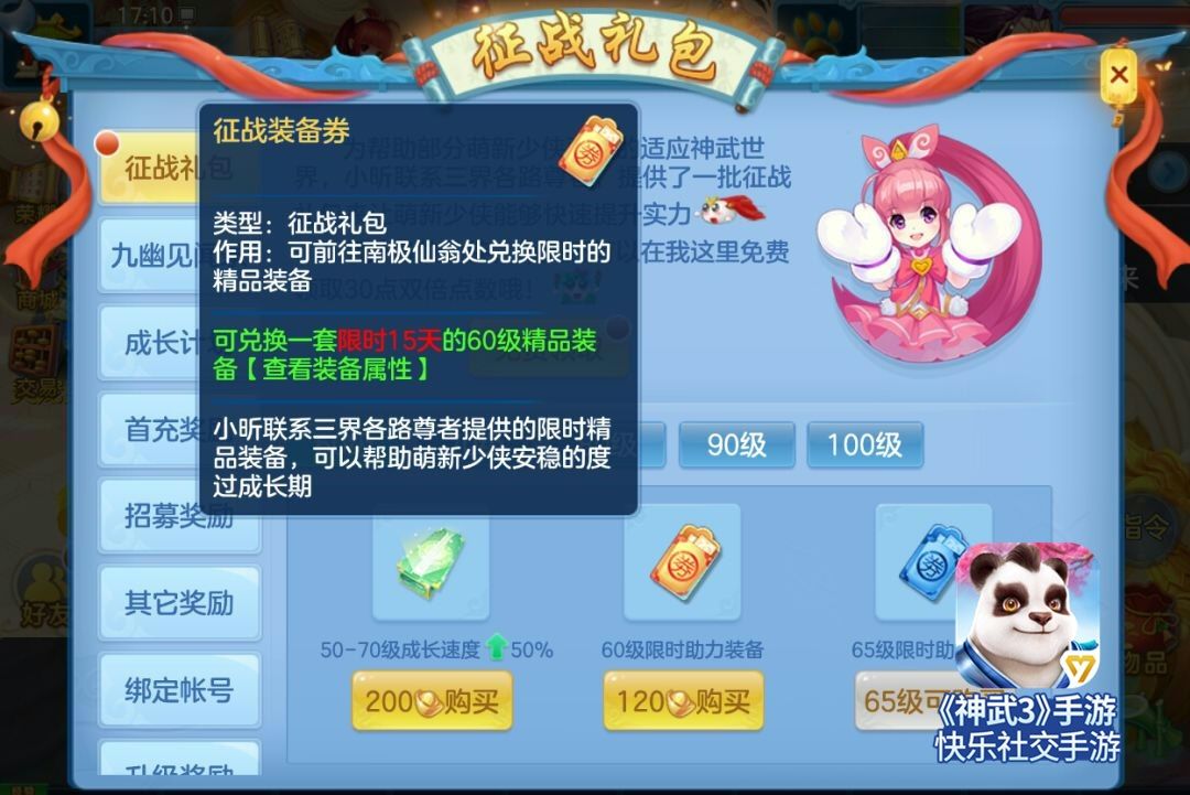 征战礼包全服开启 助力萌新少侠快乐成长