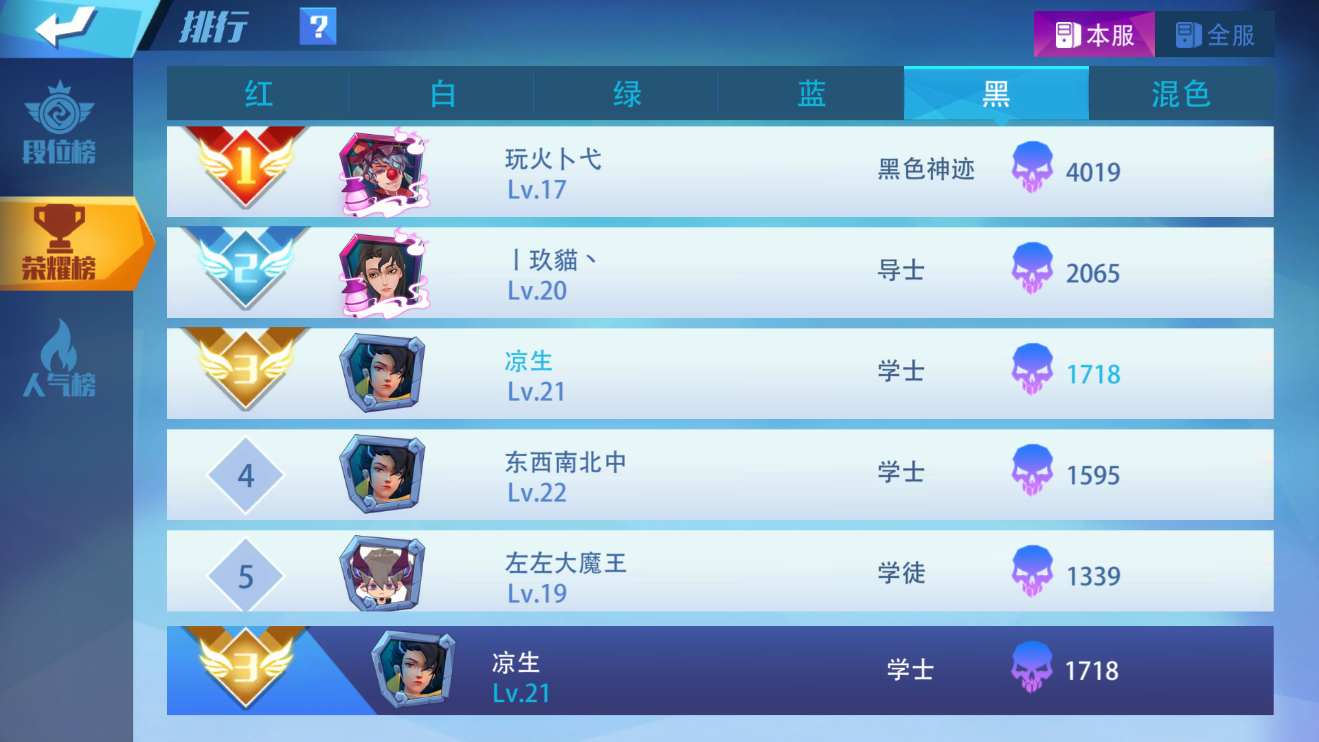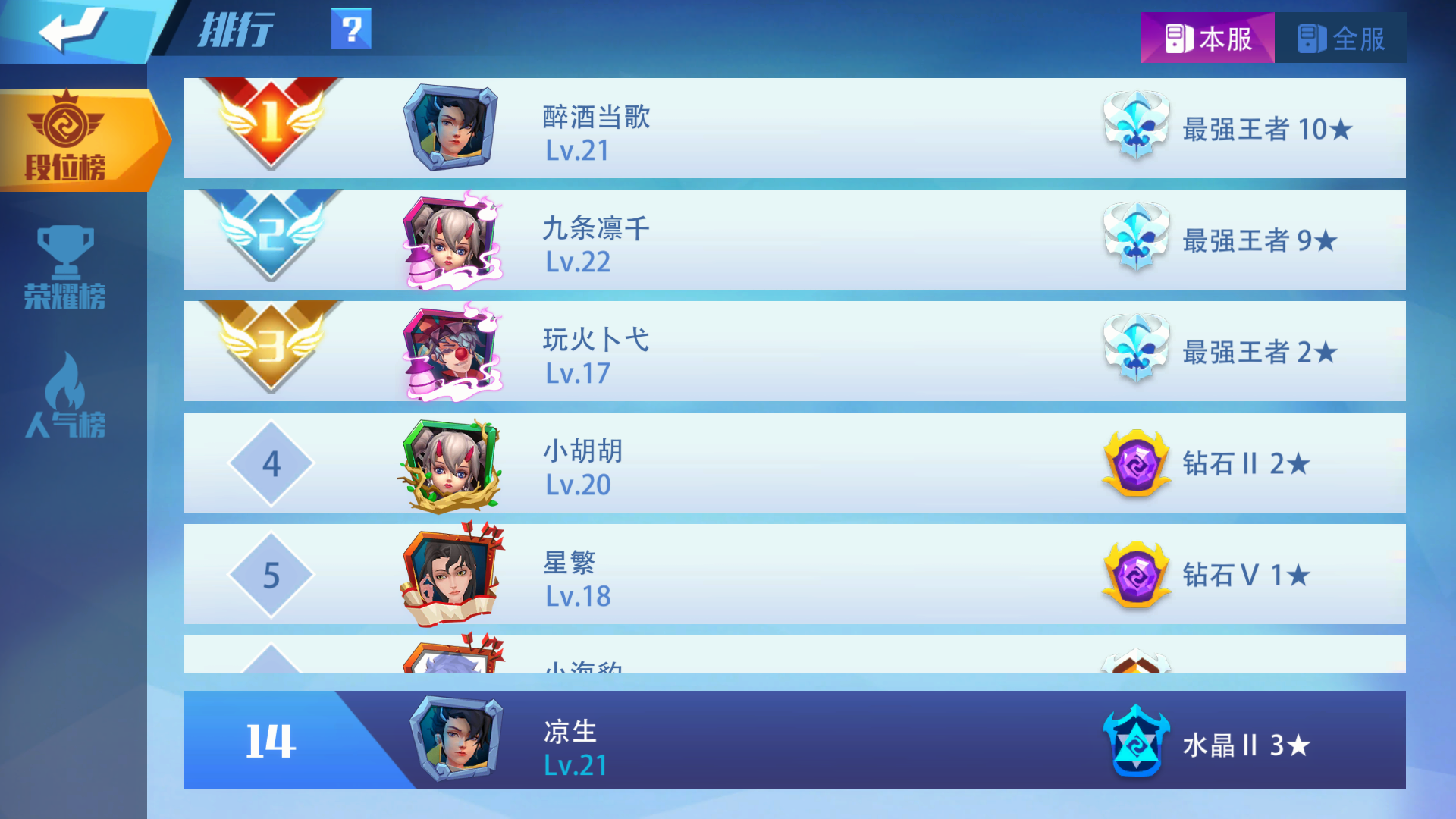 排行榜展示(没有时间玩,所以排名略低)