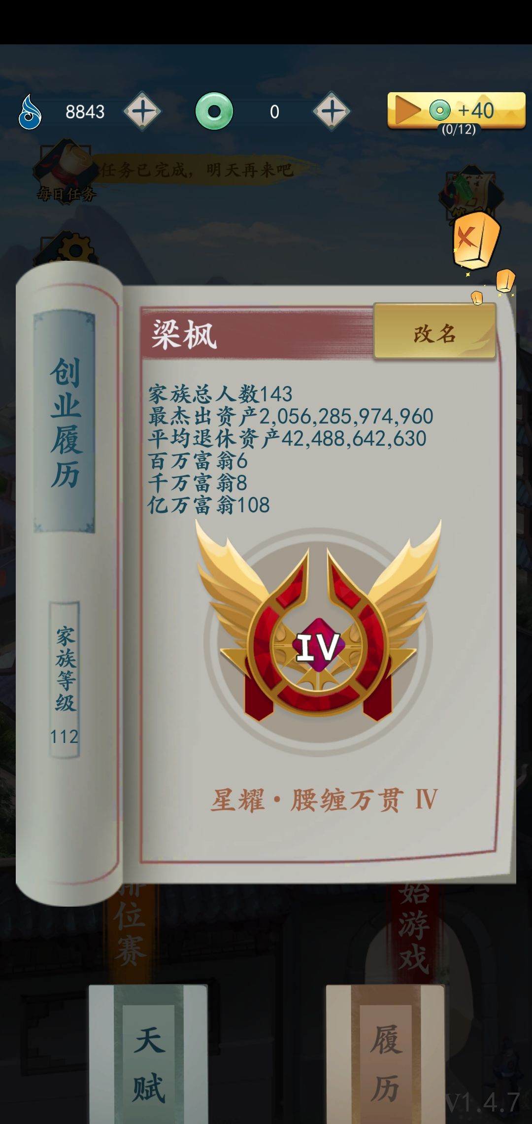 感觉这个赛季很容易度过。前期第一年15岁的时候看看有没有大跌的物品。有的话优先级是价格最高的比较好因为级别越高第二年刷出来的东西赚的越多。如果没有大跌的物品。就剩下普通跟大涨的物品选择建设字花摊。可以先去外出诗会上写下诗。这样第一年的字花摊可以升到3级。前期到19岁的时候赶紧刷广告赚钱。这个期间最主要的还是大跌物品中价格越高越好。在此期间记得可以加仓库。如果有资金赶紧加优先用钱。100到200是100万,200到300是200万,300到400是400万,400到500是800万以此类推。我一般用钱加到800万。然后点广告加100仓库。这个赛季前期宴客还有一个加100仓库的。这样就是600仓库。后期足够用。运气好的话这样20岁过亿不是梦。而且很正常。只要运气不太差都可以。