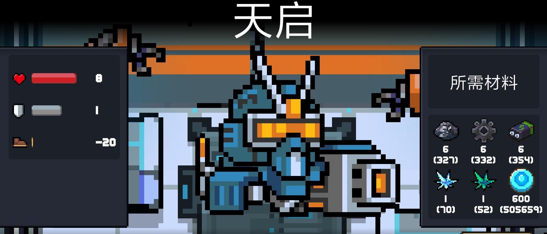 护盾:1(特别提醒:装甲系统中的护盾与人物护盾不同,装甲的护盾是可以减少一点伤害,如:舞狮装甲可以免疫一点以下伤害)