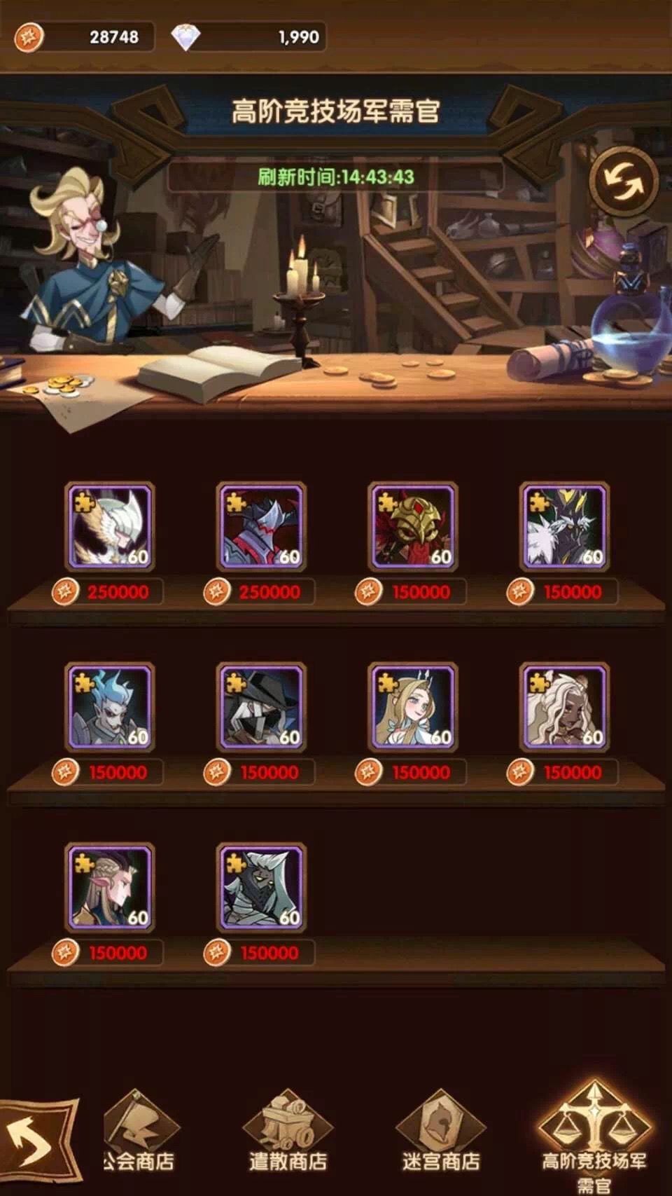 高阶竞技场军需官喜提新兑换