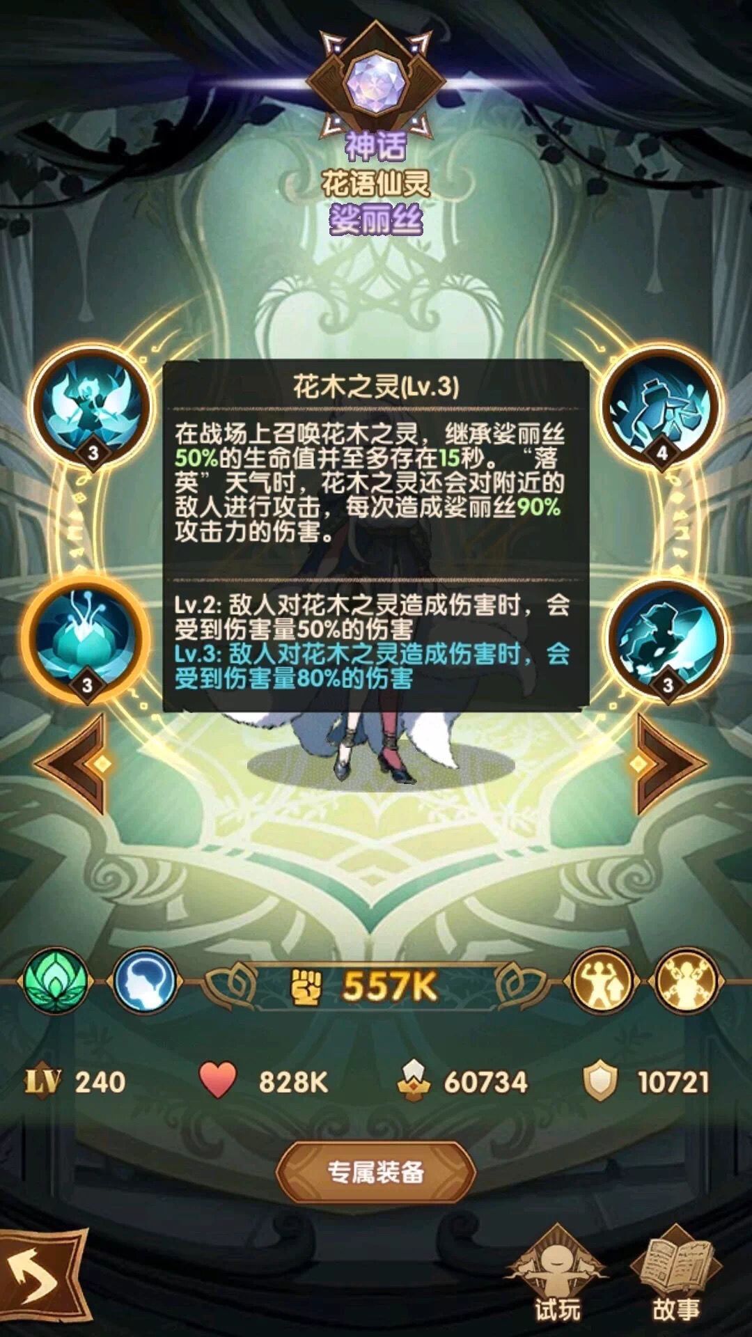 专属强度ok,30专属可以让召唤物能打能抗,召唤物被攻击时是可以反弹伤害的,详情见3技能介绍。