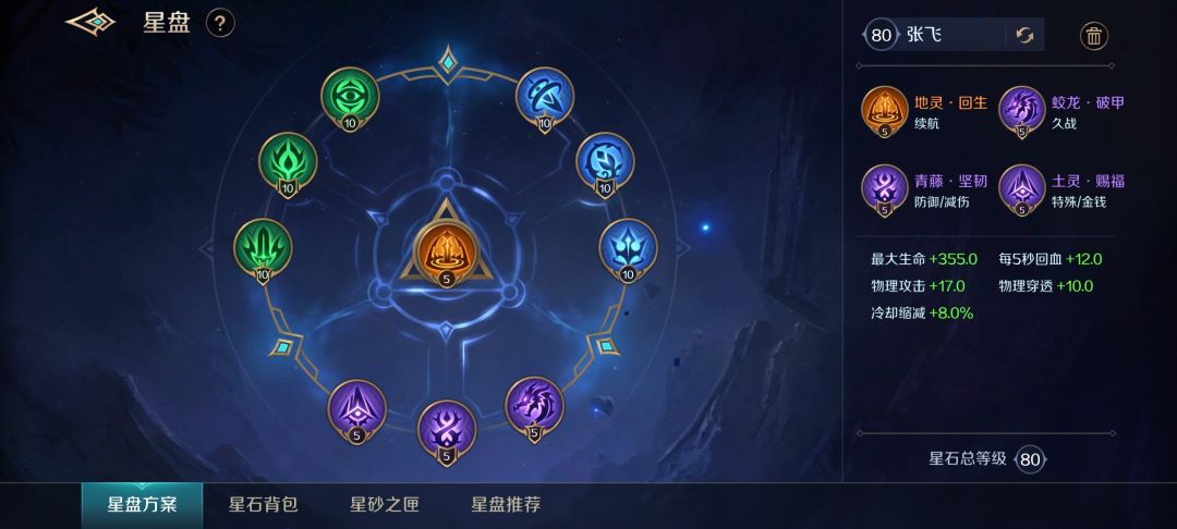 星盘的还主要以减cd和血量为主,提高自己技能回复速度,以及增强自己的生存能力,其他的可以选择攻击或则移速,最主要的橙色当然选择地灵.回生来增强自己的续航能力