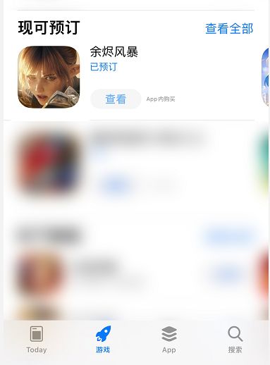 打开App Store,选择下方“游戏”板块后下拉进入“现可预定”,选择《余烬风暴》进行预约。