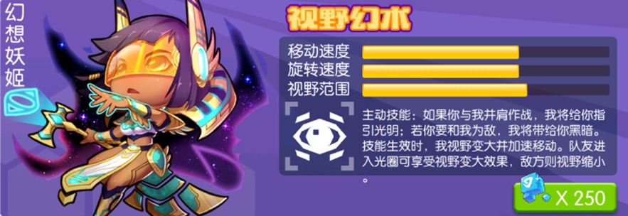 主动技能:产生光圈,对进入光圈的队友会产生视野扩大buff