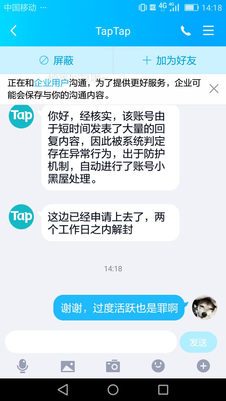 有没有人和我一样聊着聊着就没了。。。(╯‵□′)╯︵┴─┴我真是服气,朕被封禁四天/最可气的是累计起来已经被封了十一天。。
