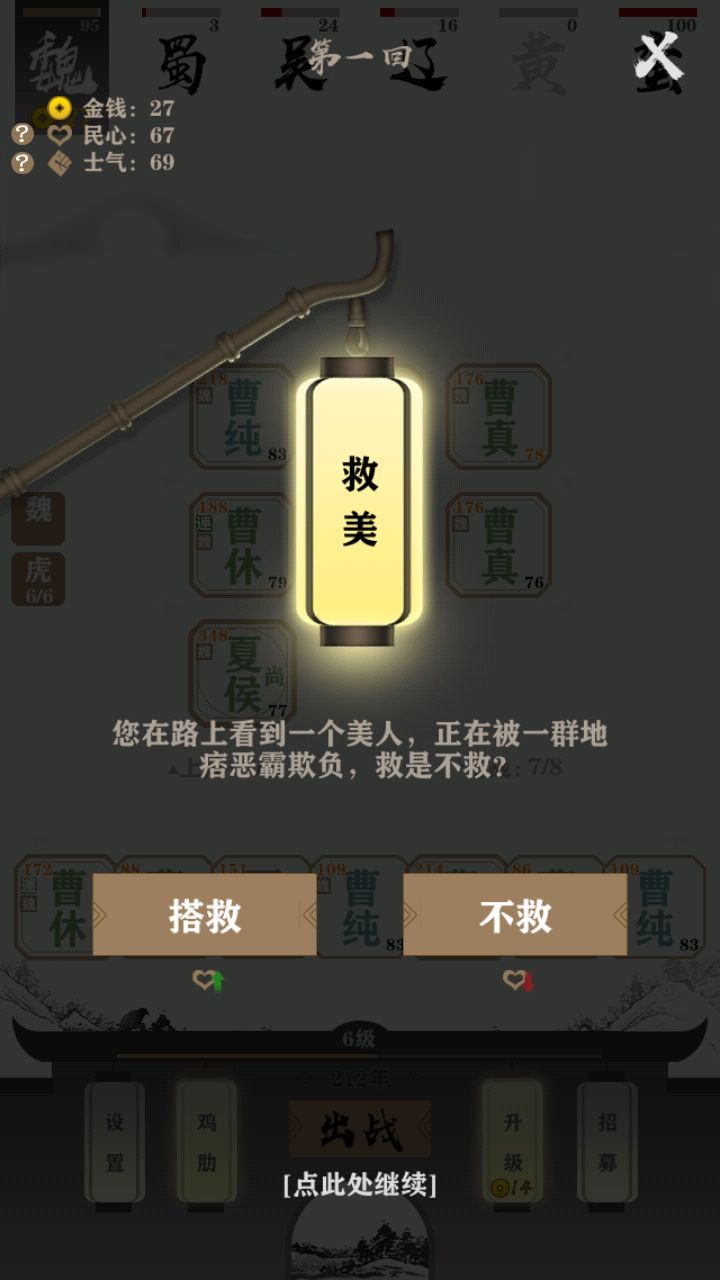 (炼狱难度除外)一般都会告诉你哪个选项能增/减民心/士气,但不会告诉你增减钱,所以增减钱就要多试选项才能知道,但玩炼狱模式,不会告诉你哪个选项会触发什么效果,都是随机的,你只能通过之前经验判断怎么选(任何鸡肋都可以强制不选,就是点上图右上角那个❌)
