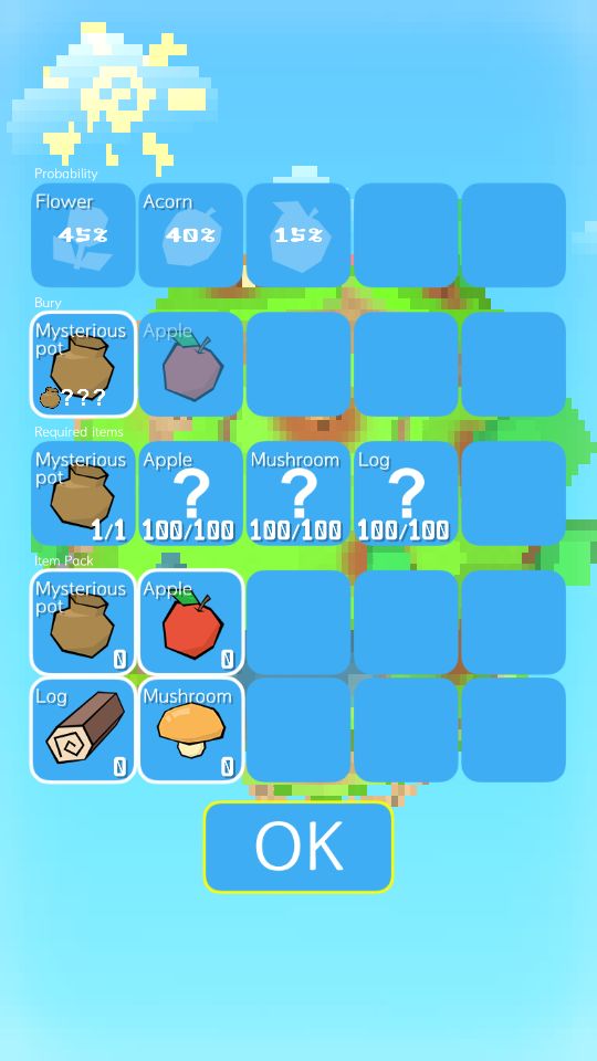 除了蘑菇是种了树以后得来的,花都是罐子得来的,那么剩余这么多个格子是什么呢????