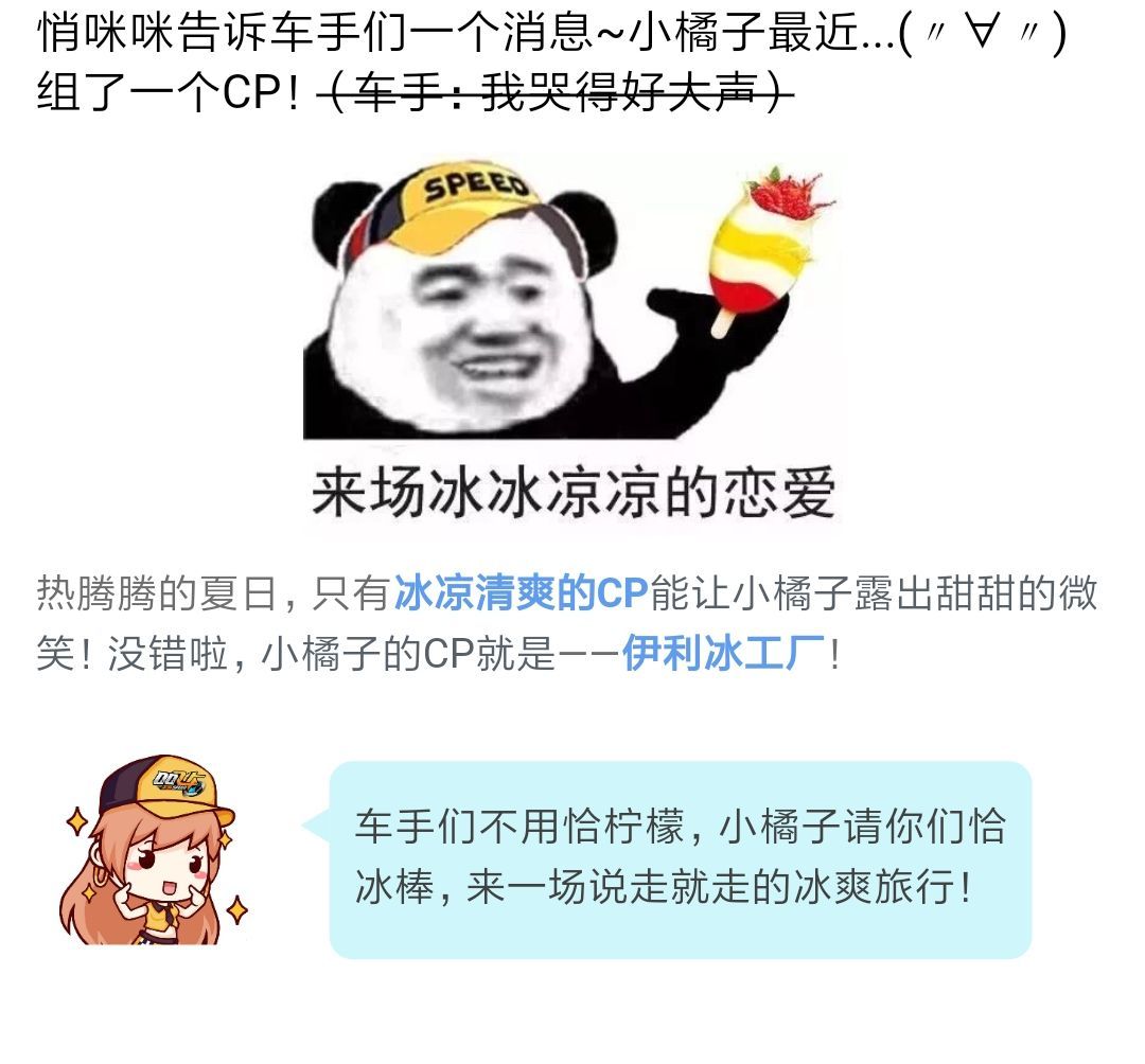 六种口味的伊利冰工厂,总有一款会成为你的最爱~这个夏天,车手们准备好跟小橘子一起带上福利,“冰爽一夏”了吗?