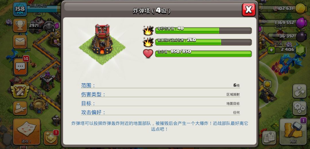 在部落冲突的众多防御设施中,群攻类型的炸弹塔非常独特。造价不菲,但攻击范围却排在众多防御的末尾,还只针对地面目标。但炸弹塔被摧毁后留下的炸弹,对于地面部队具有很大的克制效果,进攻时如果轻敌,很容易导致部队残血甚至团灭,杀伤力非常恐怖。
