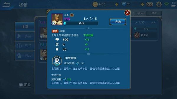 高级兵种为当前文明的标志性兵种,如果玩家当前时代与将领所处时代相同,则派遣将领出战时将激活高级兵,高级兵属性高于所处时代的基础兵种,并且高阶兵拥有额外克性效果。