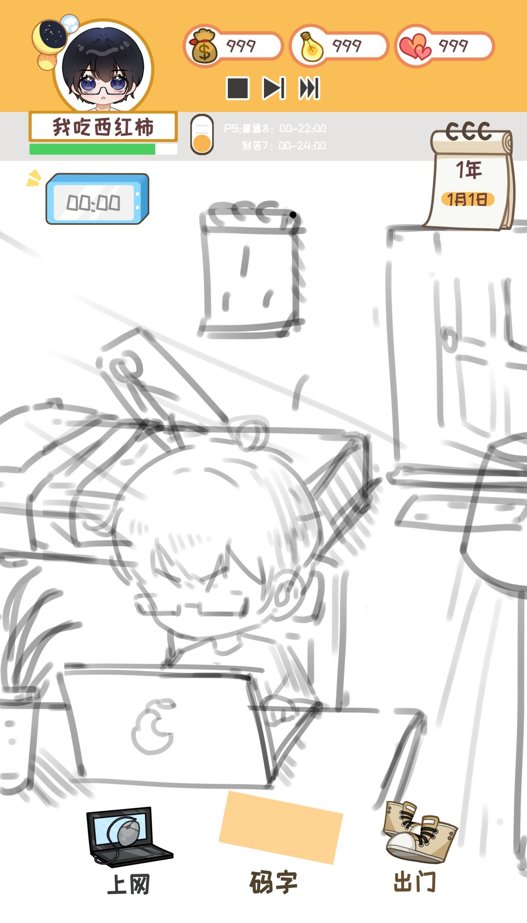 2,增加主角的换装,以及根据熬夜程度,掉头发的设定;