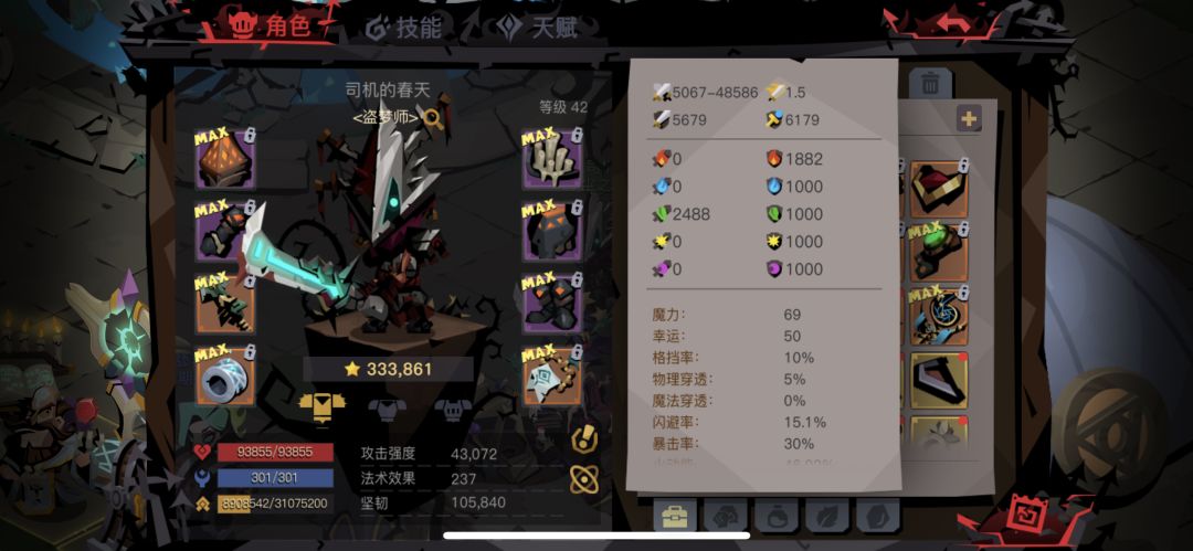 下图的这个属性是我直播,连续9个小时的过去扭曲巨魔的。当时过程有很多人看到过吧,遇到打不过的词条,要么我会选择洗战神(洗点水不够建议重新打),要么我直接回城,这也是为什么会持续9个小时才过去的原因,确实词条的问题,会让人直接从0开始。
