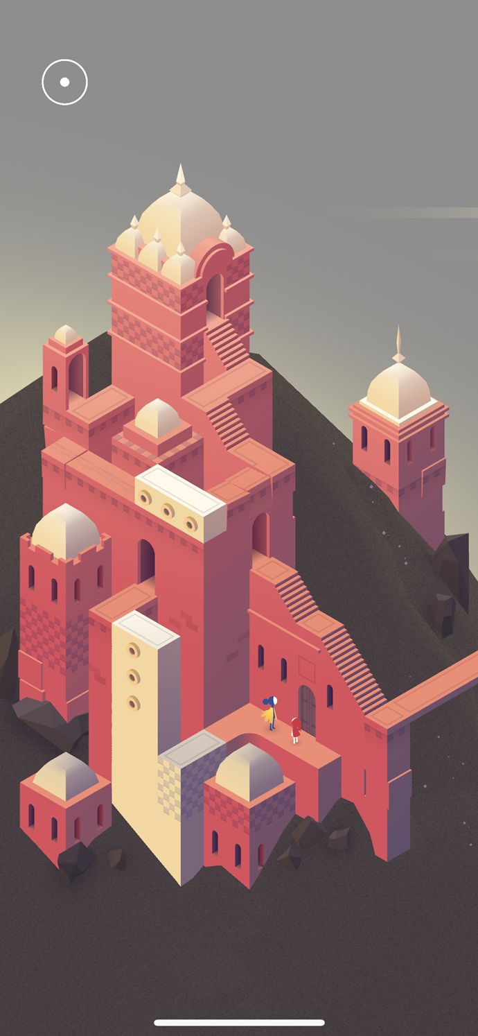 整个客厅呈现的是一个比较轻松舒适的色调,橘黄色的墙体,白色的天花板,色彩交错的地板,给人一种家的美好,同时也有一种童话般的浪漫。《纪念碑谷2》中场景,在日落时分,女儿出现在一处华美的城堡,城堡中有亭台楼阁,还有园林美景。可是女儿想要寻找的母亲不在身边,心中的不安与美丽的景色形成了鲜明的对比,表达了女儿对母亲的思念,与急切想见到母亲的焦急。