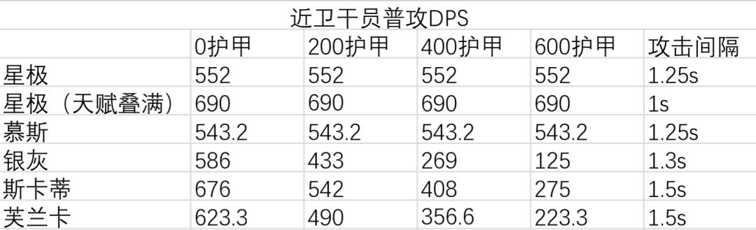 由于特性的原因,星极的面板属于标准星极的防御最高可达到471(潜能+23)超过了大部分近卫,生存能力是没有问题的,这也是她防护标签的体现另外由于造成的是法术伤害星极的输出曲线比较平滑(只要你不拿去打法抗怪)
