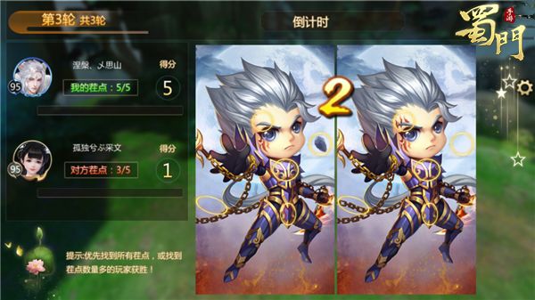 蜀门世界为庆贺元宵精心准备了【找茬大作战】活动,在元宵节期间,45级以上的玩家可进入游戏参加两两匹配找茬对决,每局都会有三轮找茬活动,玩家将在给出的游戏图片中找出不同之处,优先找到所有不同或者找到不同之处数量最多的玩家将赢得本轮胜利,能赢得更多轮数的玩家便会取得最终胜利。到了考验大家眼力、观察力的时候了,快来蜀门世界秀一秀自己的实力吧!