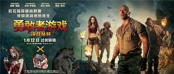 由巨石强森、凯文·哈特、“阿宝”杰克·布莱克、“星云”凯伦·吉兰、尼克·乔纳斯等一线好莱坞群星联袂主演的动作冒险巨制《勇敢者游戏:决战丛林》将于1月12日在中国正式上映,《狼人杀官方》与其进行影游联动,加入终极团战绝地逃生!