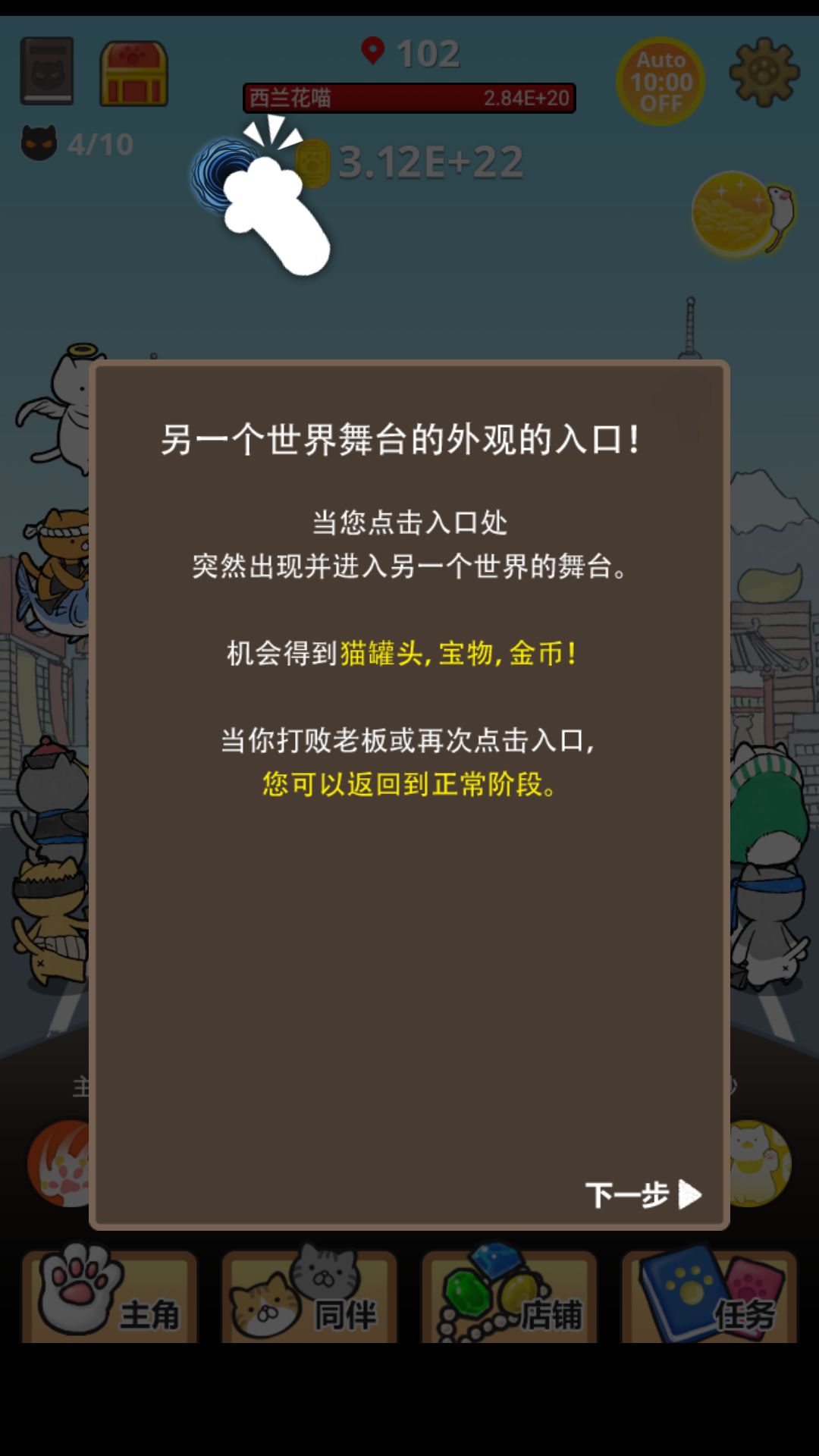 本来就是个放置游戏,玩到后期确实很无聊,每天登录戳两下妖怪就退了,结果今天打开游戏突然有了新提示,然后我开启了真•新世界w现在已经102关了,超喜欢这个新世界啊简直bug般的存在,金币蹭蹭蹭的涨OuO
