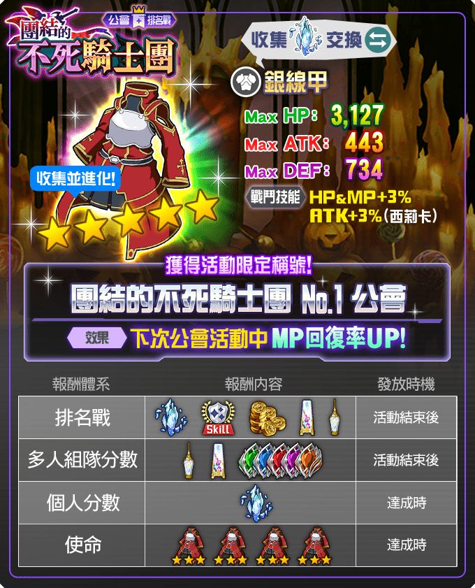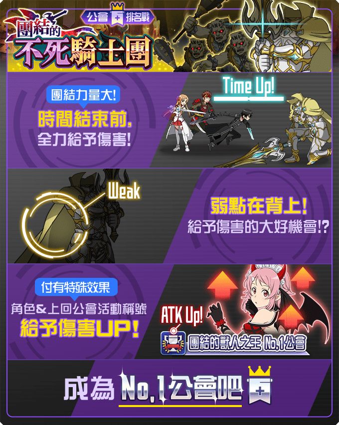 10/27(五) 10:00(UTC)起,舉行第2回公會對戰活動「團結的不死騎士團」!!