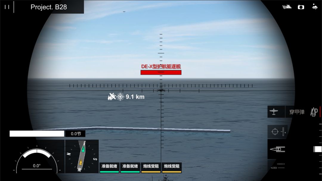 如果您有已经升空的水机,您可随时点击开火键下方的观测键切换至水机视角,并在水机视角下观察炮弹落点,或直接在这里下令发起下一轮炮击。不过需要注意的是,由于水机飞行并不平稳,因此水机上进行瞄准时无法使用德梅里克计算器,并不是任何时候在水机上指挥开火都是有优势的。何时在水机上观测开火,何时在舰桥上观测开火,就要由提督您好好斟酌啦。