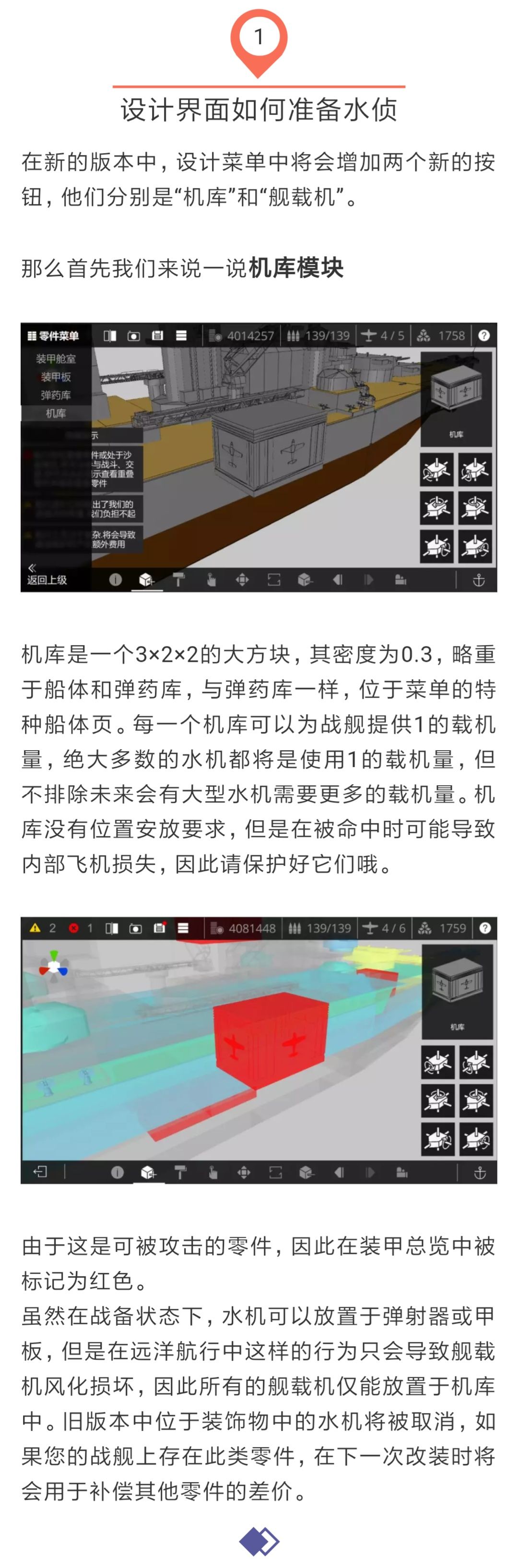 此外,水上侦察机在升空时,将会在周围五公里的区域内形成射击引导,这时瞄具会显示特殊的标志代表水侦已经提供了散布加成,主炮的散布将会减小,根据目标点的位置,将能最多减少20%的武器散布,这在远距离的战斗中将会是一大优势,但是5公里已经是很多战舰的防空圈范围,这时水侦也可能会陷入危险的境地。相对于这样的肉侦战术,水侦同时将会为船只一直提供率“友军侦察”效果,即在小地图上标记敌军位置,但是需要注意的是,水机并不能够提供射击诸元,点亮敌舰还是需要让战舰足够接近才行。