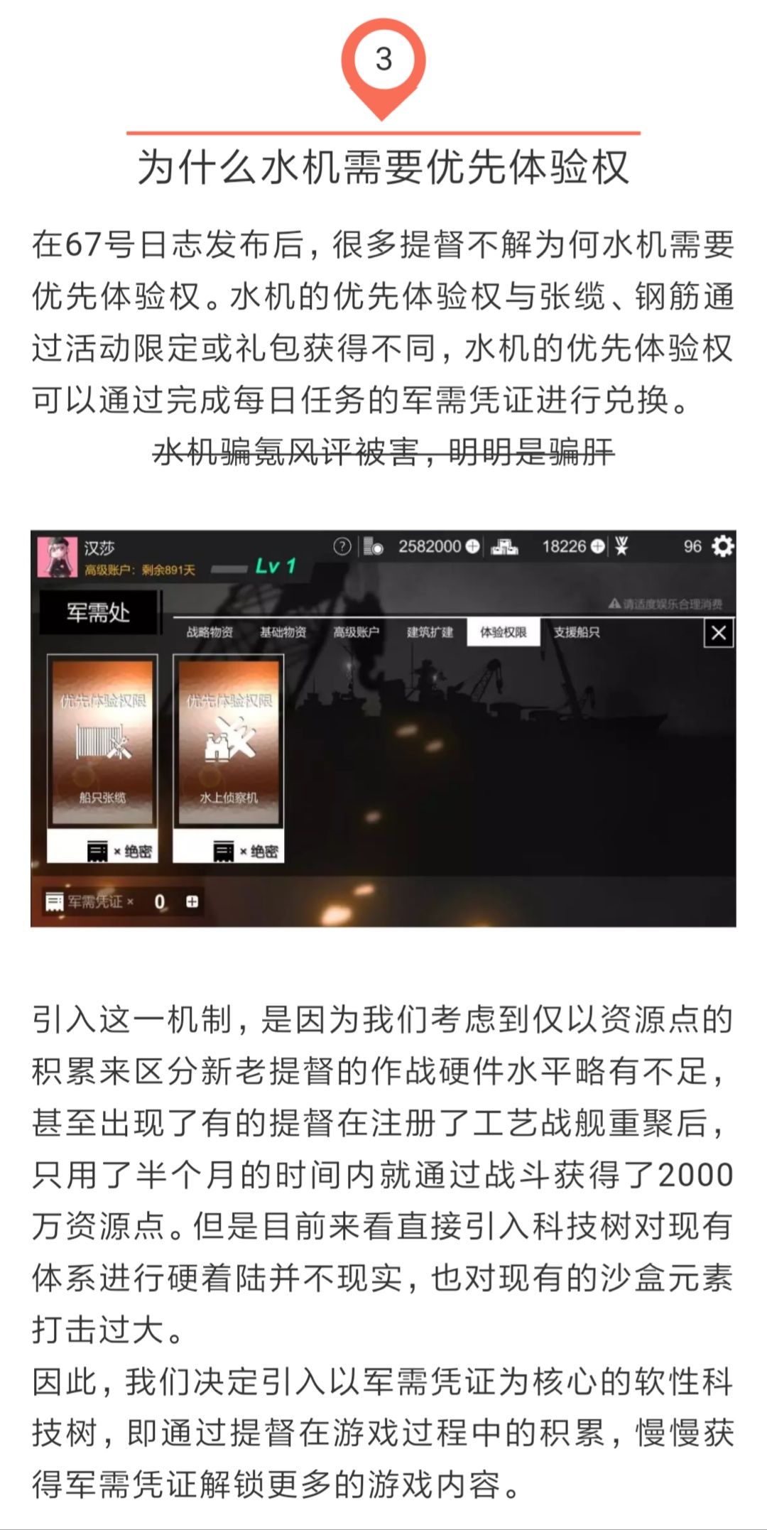 A2:目前我们计划作为一款免费游戏,即您可以免费下载工艺战舰,注册账户后直接体验游戏。氪金方面准备采用融合类似战争游戏三部曲的高级账号 普通手游的月卡合二为一的高级账号,以及直接购买游戏内付费资源、道具或其他个性化项目;这些付费内容可以通过游戏内的高级货币“战略物资”兑换,高级货币除充值外,也可通过出售图纸给其他玩家或参加游戏内各种活动获得。在大家比较关注的自由设计船只方面,您可以不消耗任何资源完成设计图纸,直到您决定将其建造服役。但是以上内容也有可能因为某些原因变动
