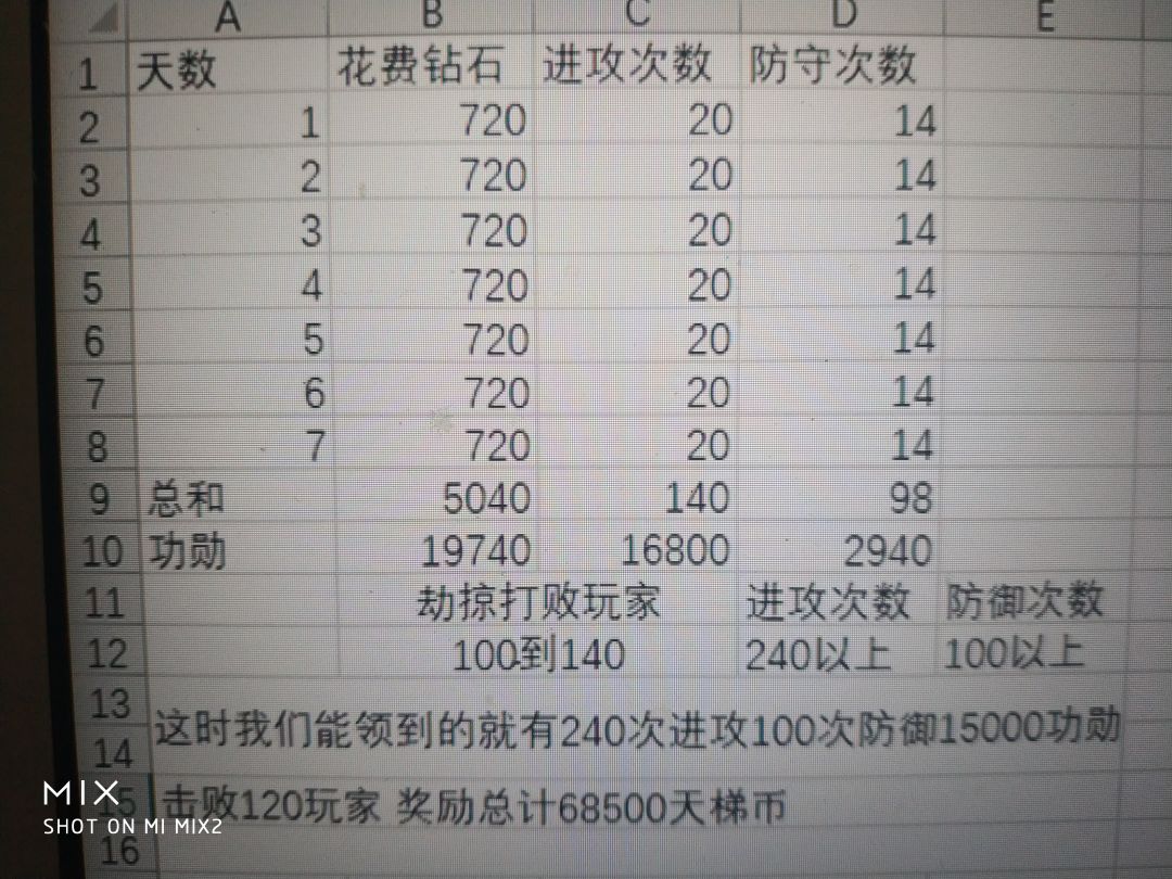 一次120功勋 敲墙最多敲50次的最强混子打法拿完保底奖励一天买10次攻击12次防御 防御加的功勋少一次30但是为了保证你能活7天这是基本的另外还要看局势发展