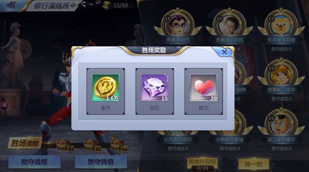 每当战胜一轮所有对手时,可以开启9胜宝箱,其中有20体力的奖励。