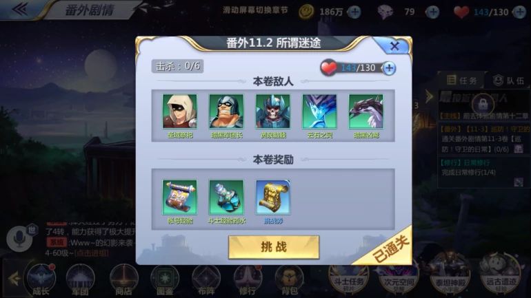 1、 挑战剧情副本和番外副本: