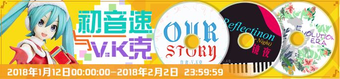 2018年1月11日游戏更新后-2018年2月2日23:59:59期间,在游戏内演奏V.K克的OurStory(中级6星)、Evolution era(高级7星)、Reflection(中级6星)、Wings of Piano(高级8星)