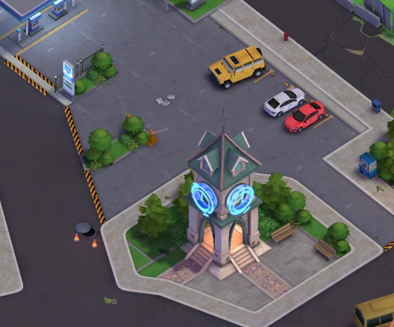 除了自带醒目招牌的酒馆以外,警察局、政府大楼、篮球场甚至还有教堂,你都能在小镇中找到。当然,与小镇名称以及S级变身载具息息相关的钟楼也坐落在其间!