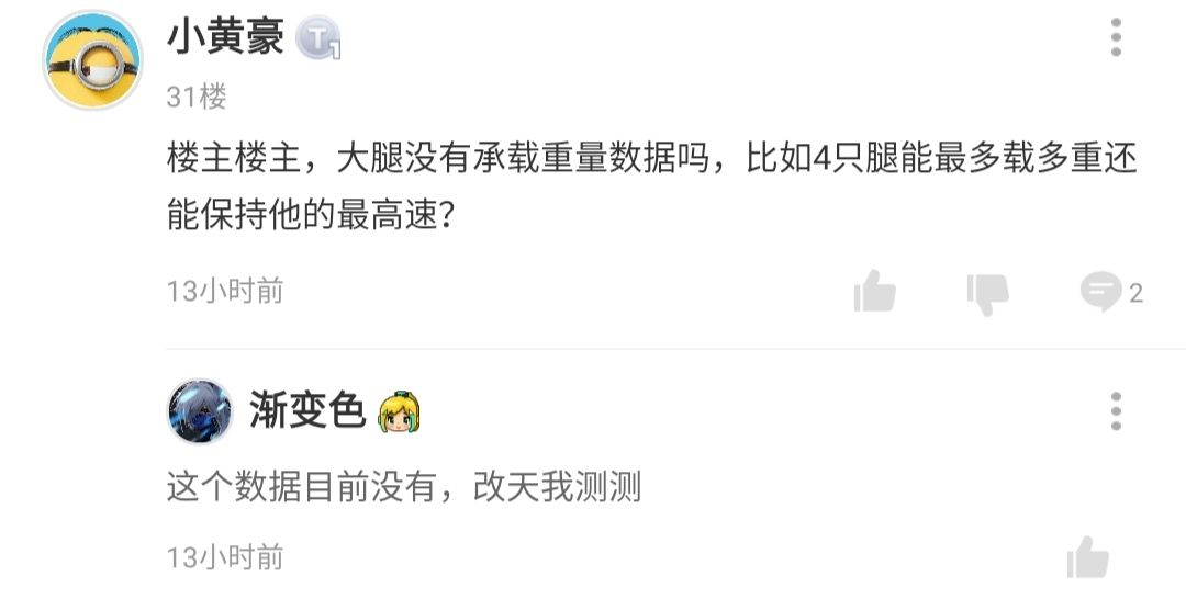 写在视频前,这几天打算做一下有关移动模块(机械腿与车轮)的测试,测试内容可能非常多样,有了结果我都会第一时间发在TapTap论坛,B站这些天审核速度太慢,看情况再更。