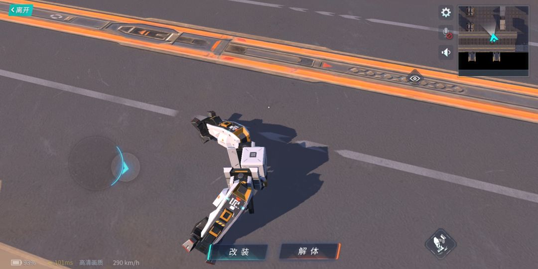 问题的关键所在就是【移动方向】和【机械腿的摆放朝向】,只有具备以上两点,才能做到上图中的夸张移速。普通的悬浮车因为要向前行驶,所以单从【移动方向】因素,已经无法做到上图中的速度了。