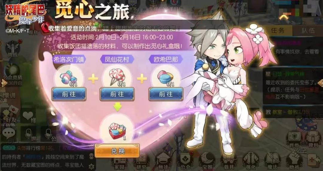 在这满含甜蜜与爱意的日子,酷爱各种甜点的饭团喵也都出来寻觅自己爱吃的甜品了。从他们身上寻找各种各样的甜品,去兑换心意满满的觅心礼盒吧!打开礼盒可以获得各种惊喜礼品,还有可能获得传说魔法兽「星魇」或「狂羚」哦~