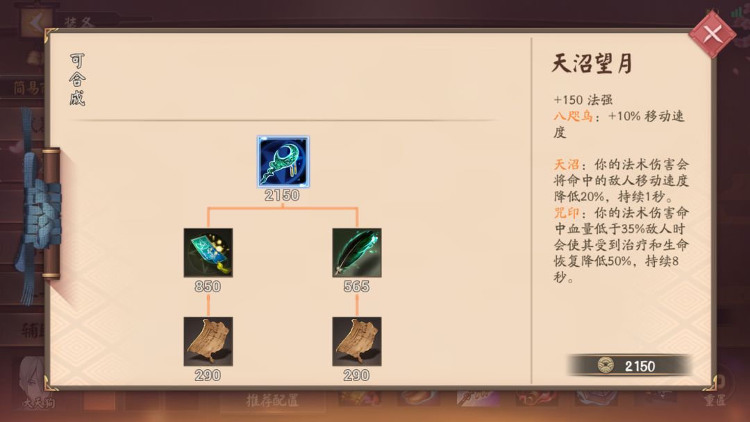 合成公式:晴明印(850)+八咫乌尾羽(565)=天沼望月(2150)