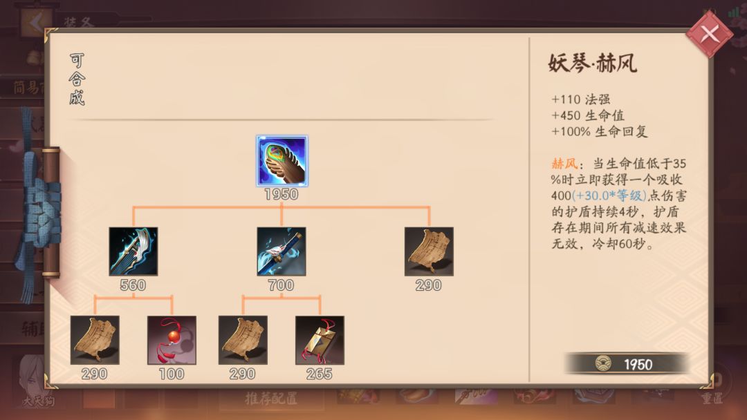 合成方式:千鹤琴(560)+狐影清刀(700)+古事残页(290)=妖琴赫风(1950)