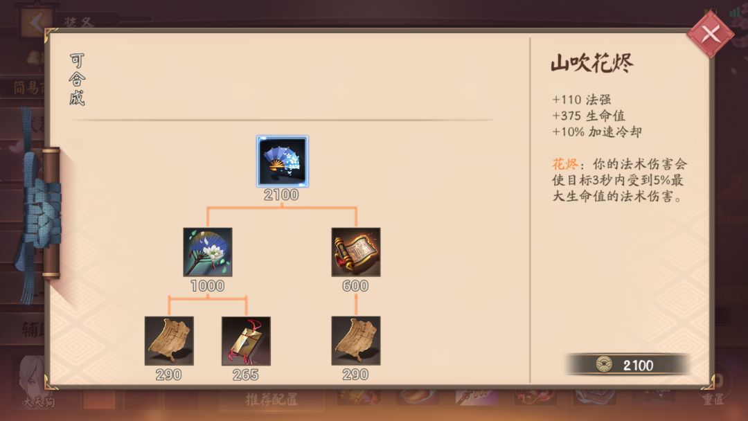 合成公式:散华之扇(1000)+古事记之卷(600)=山吹花烬(2100)