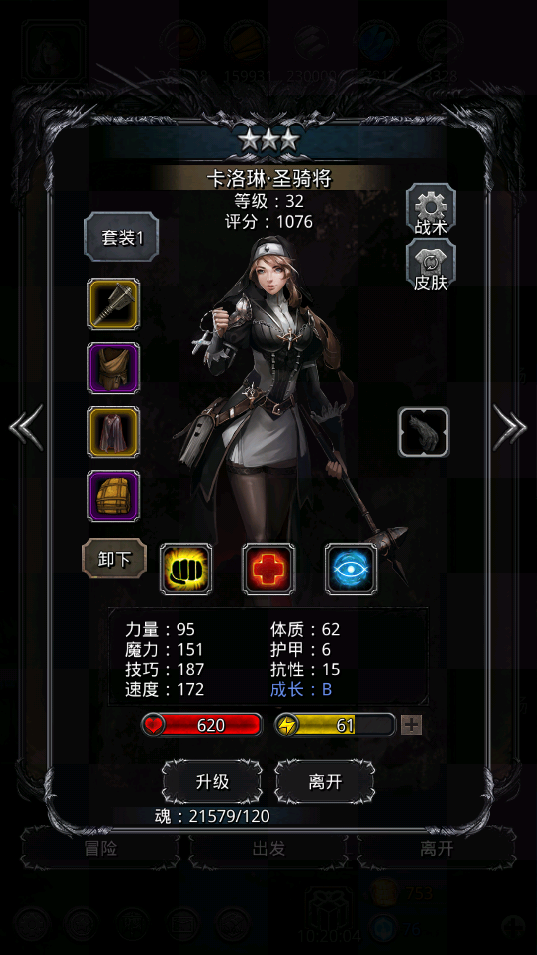 圣骑招蓝色或者紫色女的,金色力速比达不到,白色治疗不够,女的力量比较低,升到3星满级。