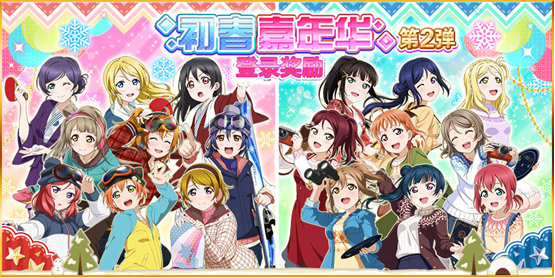 《Love Live! 学园偶像祭》为了感谢各位玩家的支持,开启初春嘉年华活动(第2弹),叫上小伙伴一起来体验游戏的快乐吧。