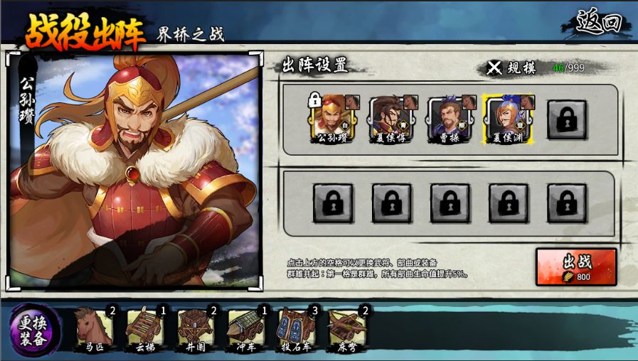 此处出战顺序决定了战役开始时部曲的出场位置,较为重要。
