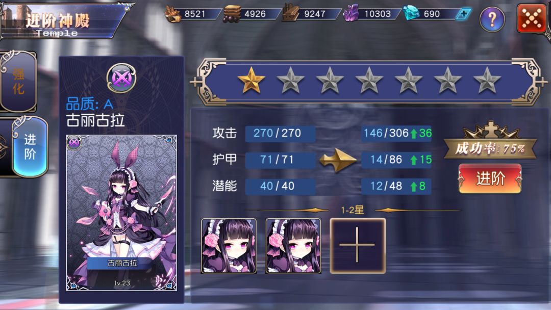 一星升2星需要2张同卡,升星后强化值归0,强化上限提升;