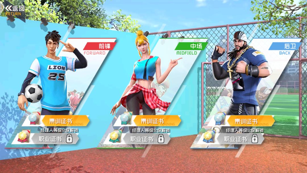 另外《街头足球》生涯玩法当中还有剧情和活动暂时未上线,后期热更上线时我们也会第一时间同步相关指引的哦,还请小伙伴们敬请期待哈~ 生涯当中证书玩法是通过挑战考取三个球员位置的青训证书以及职业证书,青训证书的难度较低,而职业证书要求就比较高,职业的要求经理人等级达到12级以上才可解锁。 考取相应球员位置的青训证书后即可获得对应的球员,例如前锋挑战可获得阿磊,中场可获得桃乐丝,后卫可获得金权海。如果小伙伴们初始选定的球员是前锋阿磊,那么就可以通过以上方式最快获得另外两名球员。